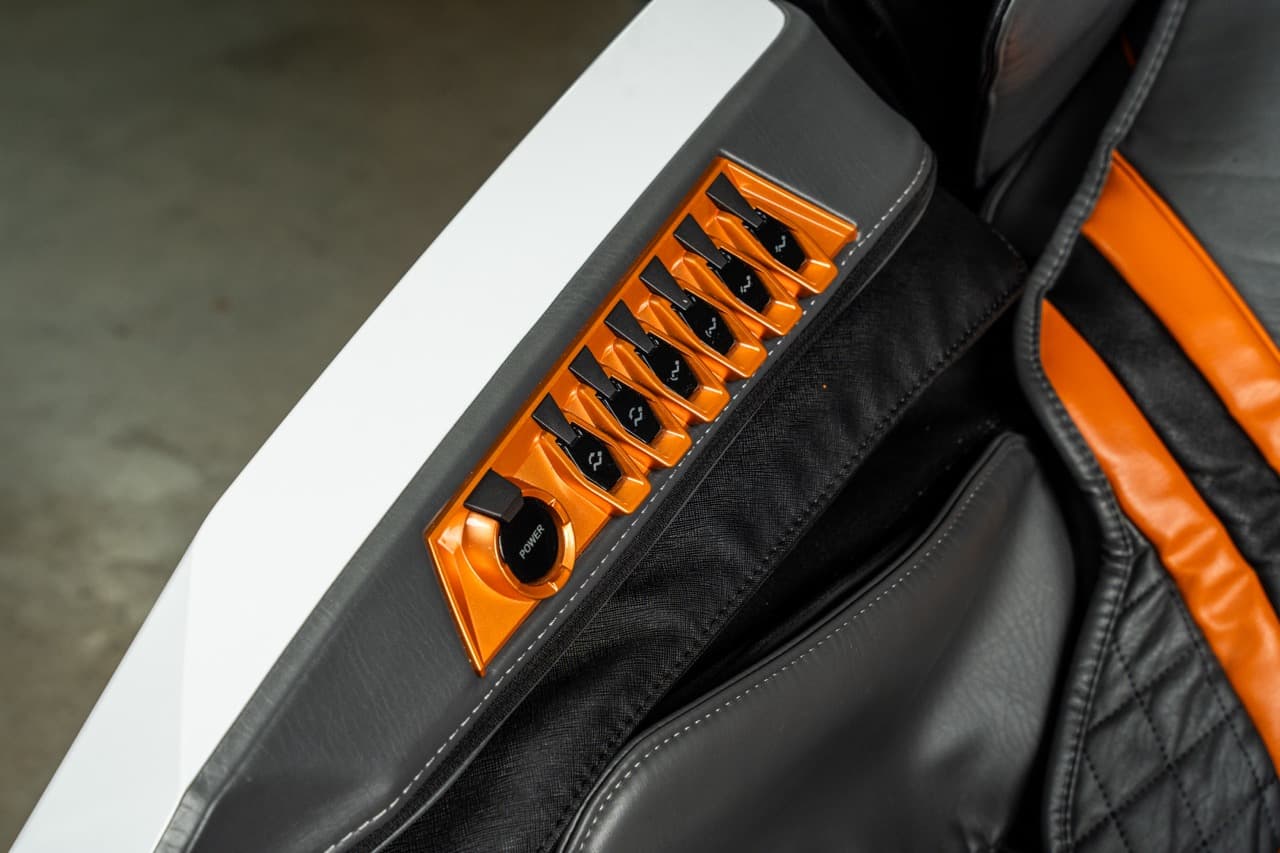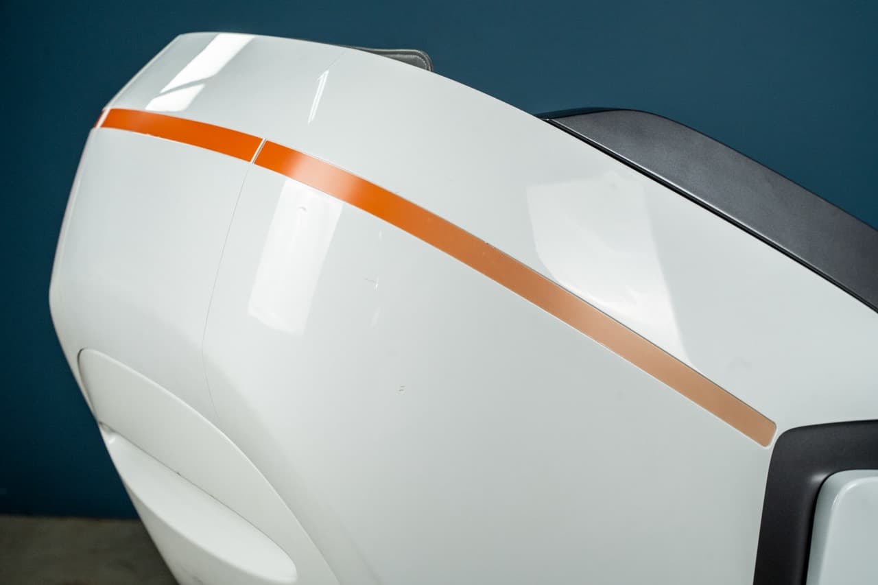 Deze hoogwaardige massagestoel, volledig functioneel en in perfecte werkende volgorde, heeft verschillende verfimperfecties op de voetsteun, duidelijk zichtbaar in de beeldgalerij, gefotografeerd vanuit meerdere hoeken. Een perfecte gelegenheid om te genieten van een hoogwaardige massagestoel tegen een aanzienlijk verlaagde prijs!