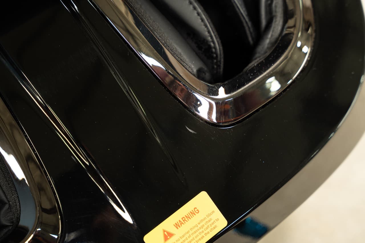 Deze hoogwaardige massagestoel, volledig functioneel en in perfecte werkende volgorde, heeft verschillende verfimperfecties op de voetsteun, duidelijk zichtbaar in de beeldgalerij, gefotografeerd vanuit meerdere hoeken. Een perfecte gelegenheid om te genieten van een hoogwaardige massagestoel tegen een aanzienlijk verlaagde prijs!