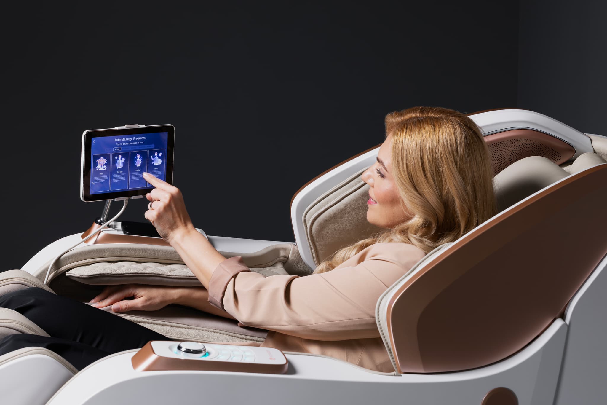 TITAN II chair features an 8-inch touchscreen tablet that gives you complete control over every aspect of your massage. You'll feel empowered and pampered as you customise your massage to suit your specific preferences and ailments. The TITAN II delivers a massage any professional masseuse would be proud of.