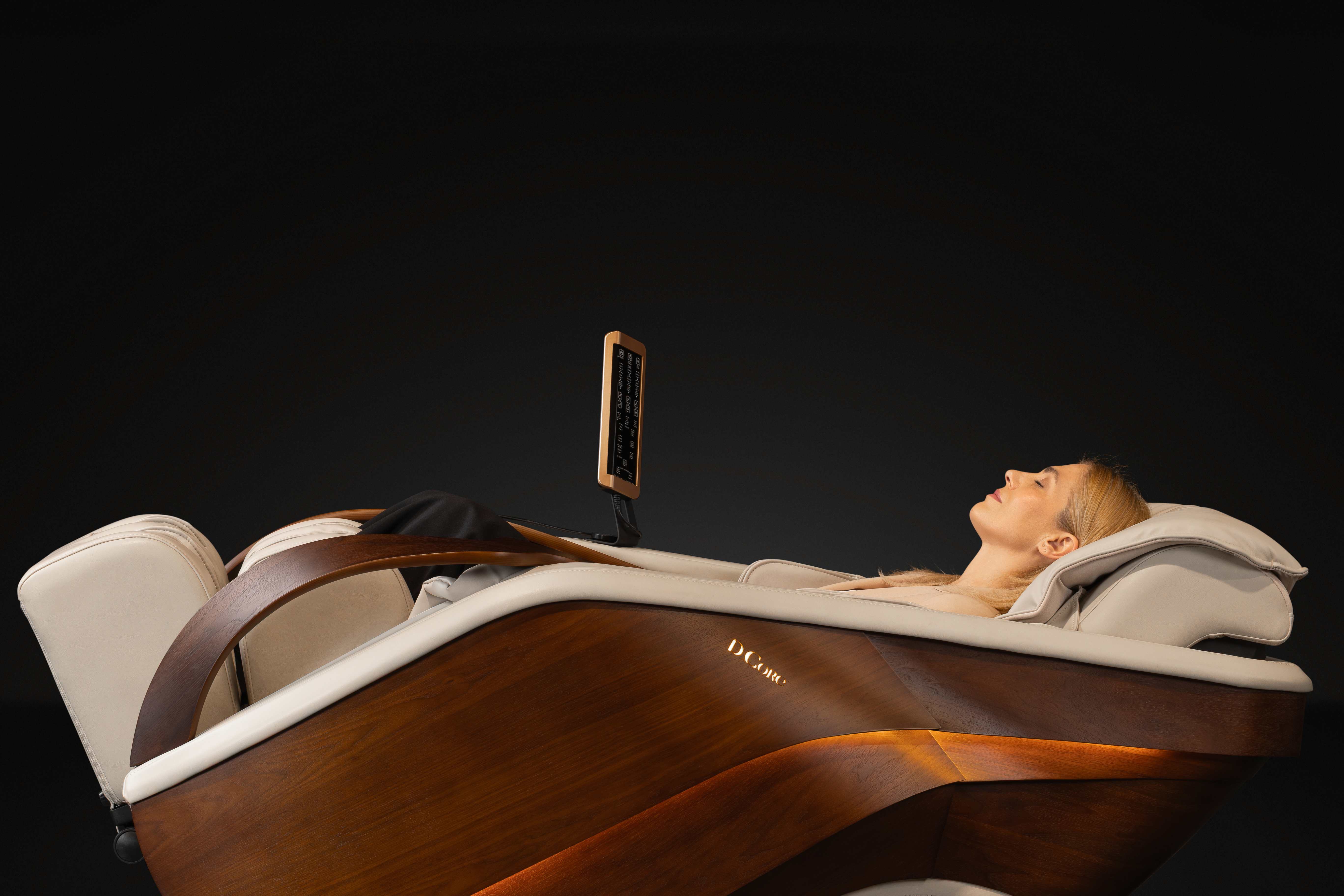Het topmodel van D.CORE verenigt alle ervaring van Inada Soshu en Dr. Takehiro Isawa in een product dat ongeëvenaard is in de industrie. De elegante vormen, geaccentueerd door de walnotenhouten armen en het decor, maken van D.CORE Cirrus een gastvrij en uitnodigend geheel, compleet toegewijd aan je welzijn!